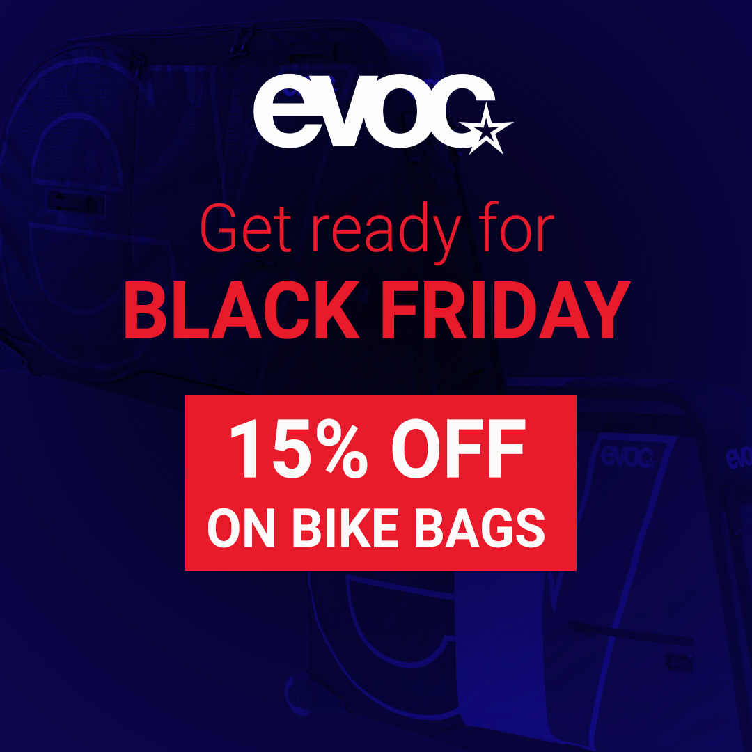 Black Friday is almost here. Take advantage of the holiday by getting 15% off select EVOC Bike Bags, perfect for this time of year. As the winter comes, and customers start travelling to sunny destinations, get them the industry standard in bike bags to make sure all their equipment arrives safe