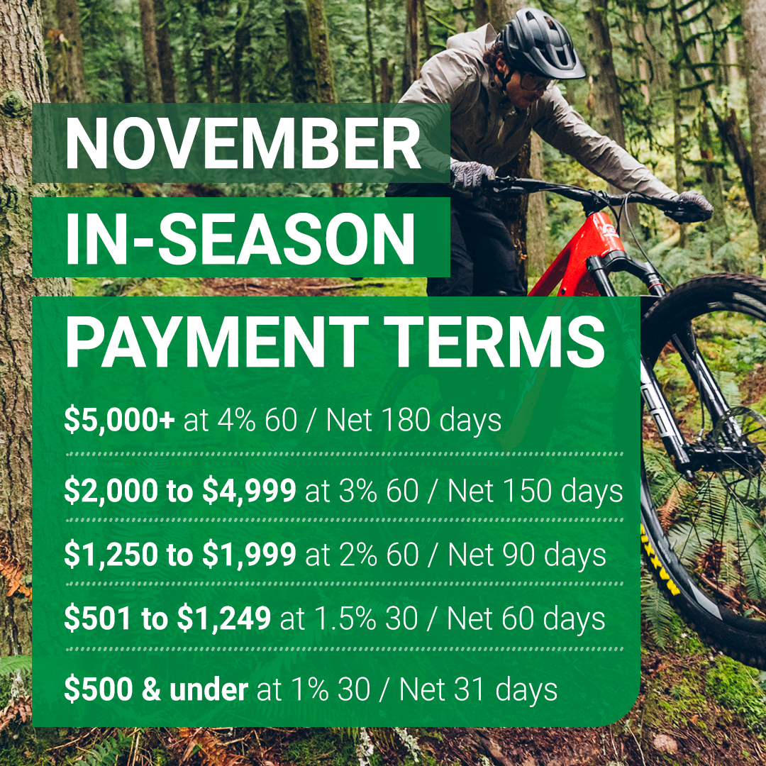 Take advantage of extended payment terms to ease winter cash flow — pay in April on $2,000–$4,999 orders (3% 60 / Net 150) or in May on $5,000+ orders (4% 60 / Net 180). Stock up now, boost margins, and be ready for spring without tying up cash today.